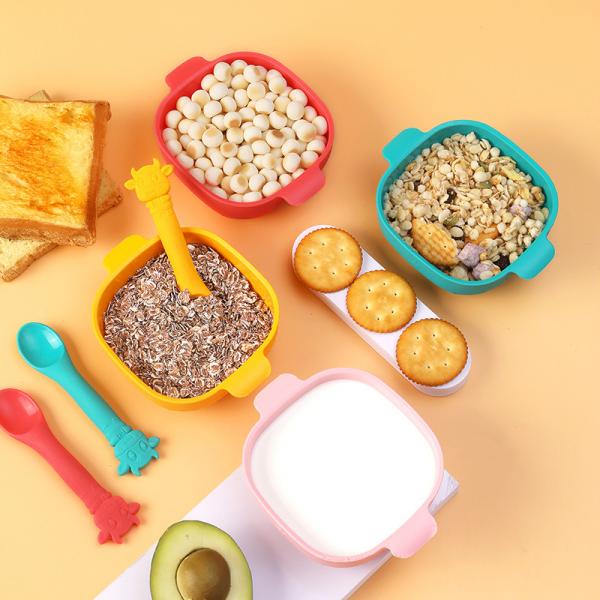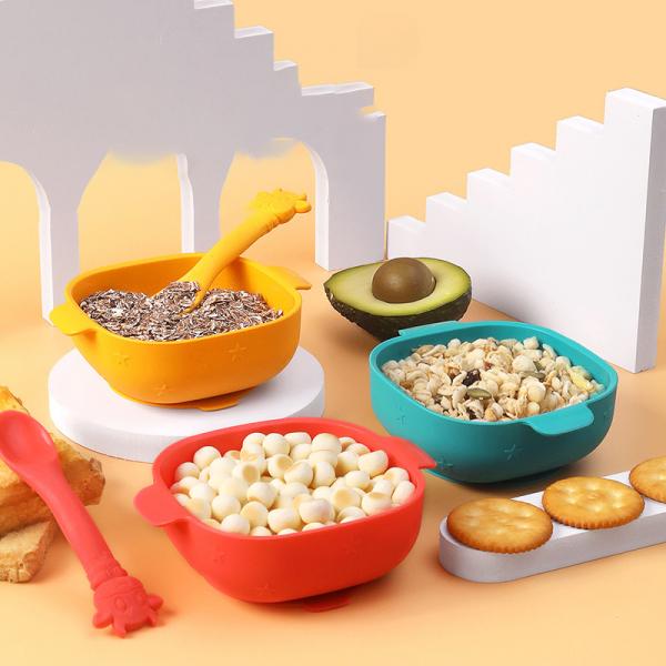 Die Kinder-Silikon-Nahrungsschüssel ist voller Liebe und Essen, das Baby isst gut und die Mutter fühlt sich wohl, großer Durchmesser Saugnäpfe, solide Adsorption Arbeitsplatte, sanft heben Sie die Platte Hand Teller kann leicht aufgenommen werden, kann gekühlt werden und mikrowellengeeignet