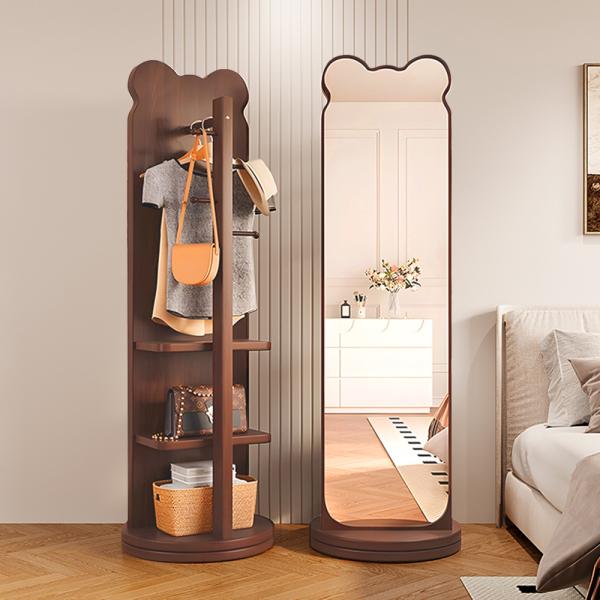 MuXing Ganzkörperspiegel im Bärendesign – Standspiegel, Ankleidespiegel, einseitig, drehbar, für Garderobe und Schlafzimmer 168 x 46 cm 【JZ-68zong】