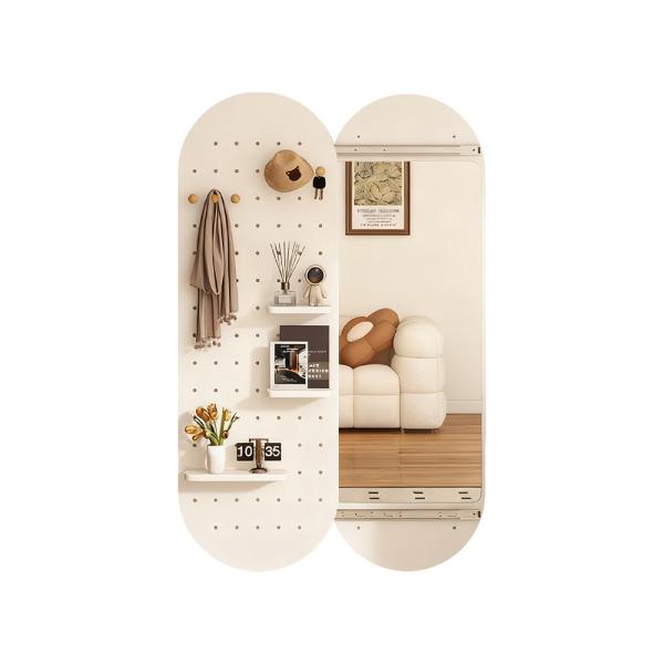 MuXing Schiebespiegel mit Lochplatte – Ganzkörperspiegel, Wand- & Ankleidespiegel, Versteckter Spiegel für Schlafzimmer & Flur Weiß