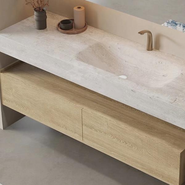 Schubladenschränke und offene Regalfächer ergänzen sich optimal, um unterschiedliche Aufbewahrungsbedürfnisse zu erfüllen. Schubladen bieten Platz für kleinere oder private Gegenstände und verhindern Unordnung, während offene Regale häufig genutzte Utensilien griffbereit halten. Handtücher und andere tägliche Gebrauchsgegenstände lassen sich bequem verstauen und leicht entnehmen.