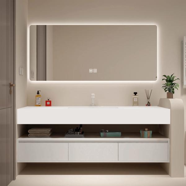 Das Waschbecken und die Arbeitsplatte sind aus einem Stück gefertigt. Die glänzend weiße Oberfläche ist kratzfest, hitzebeständig, korrosionsbeständig und besonders leicht zu reinigen. Keine Flecken, keine Verfärbungen – für dauerhafte Schönheit und hygienische Sauberkeit.
