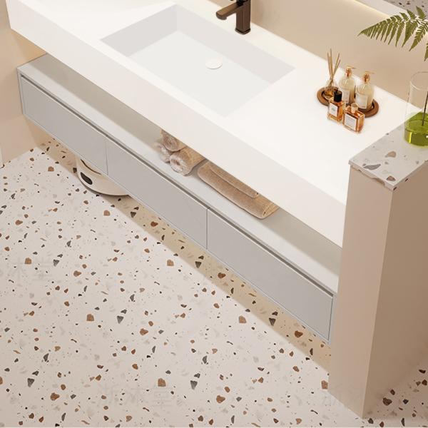 Das wandhängende Design nutzt den vertikalen Raum optimal und bietet zusätzlichen Stauraum, ohne den Boden zu blockieren. Dadurch bleibt der Boden frei und lässt sich leicht reinigen – perfekt für moderne Bäder oder kleinere Räume.