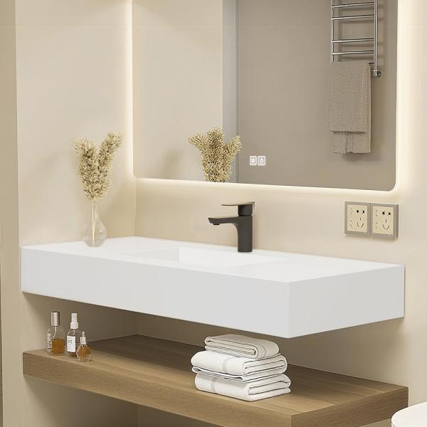 Das Waschbecken ist mit einem vorgebohrten Hahnloch zur Installation des Wasserhahns ausgestattet.