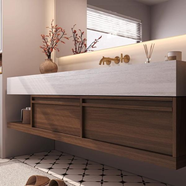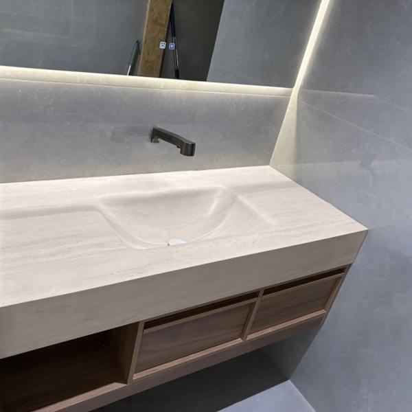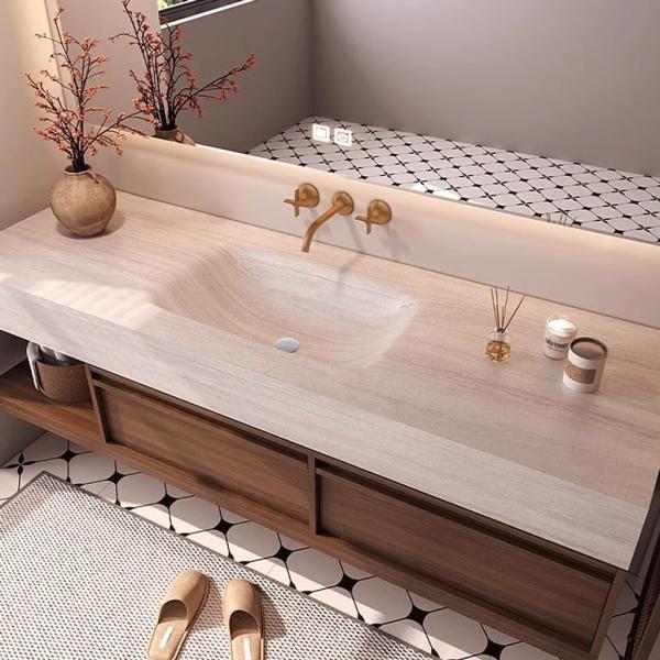 Der integrierte Waschtisch erfreut sich dank seines einzigartigen Designs und seiner hohen Funktionalität großer Beliebtheit in der modernen Badezimmergestaltung.