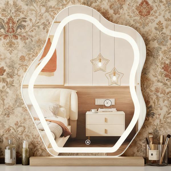 Preview: MuXing Wolkenform Schminkspiegel – mit LED-Beleuchtung, für Schlafzimmer, Wohnzimmer & Schminktisch, 52×80cm /JZ-352/