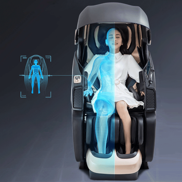 Der Massagesessel verfügt über eine Gesundheitstestfunktion, die Herzfrequenz, Haltung und Drucküberwachung auf dem Bildschirm anzeigt.