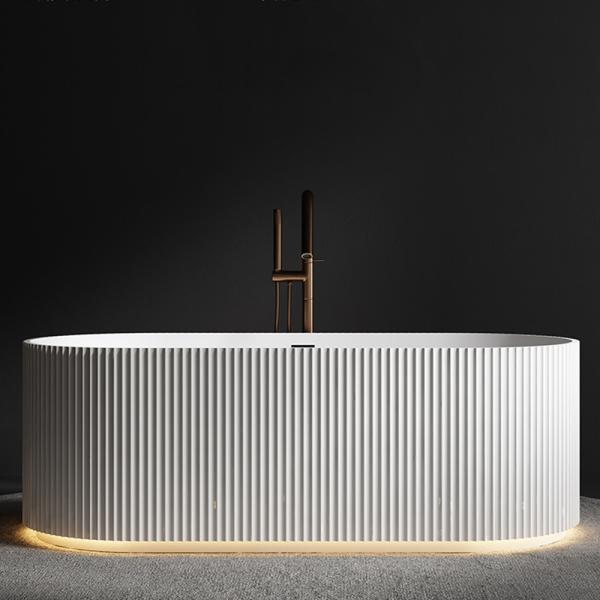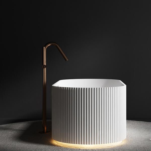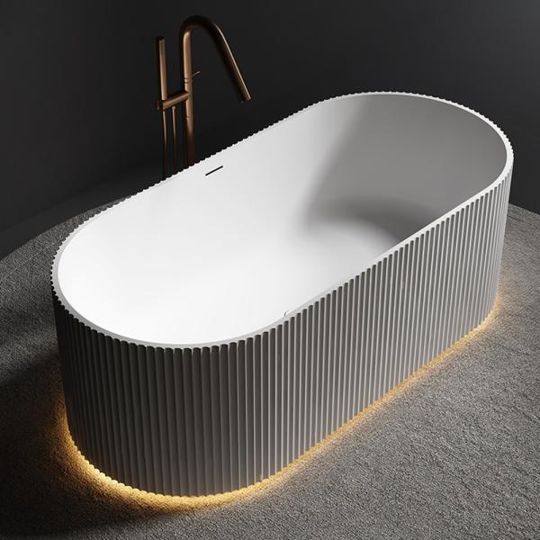 Die vertikalen Streifen auf der Acryloberfläche verleihen dem Wannenkörper eine besondere optische Tiefe und sorgen gleichzeitig für eine rutschhemmende Haptik. Dadurch wirkt das Badezimmer noch stilvoller und hochwertiger.