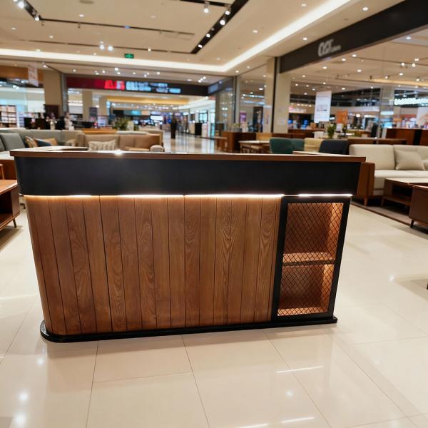 Der Tresen wird als Ganzes transportiert. Bei besonders großen Größen besteht er aus Modulen, die miteinander kombiniert sind, und muss nicht montiert werden.