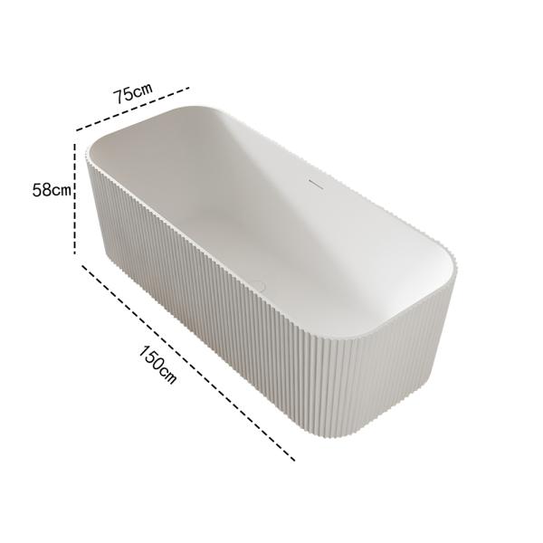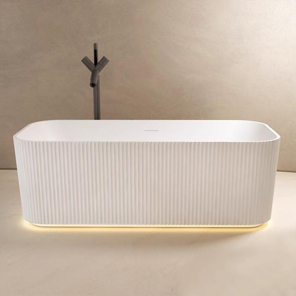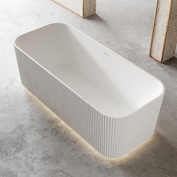 Vertikale Seitenstrukturen kombiniert mit einer nahtlosen Fertigung verleihen der Wanne einen klaren, ästhetischen Look. Die Oberfläche wirkt strukturiert, fein und hochwertig – ganz ohne die monotone oder plastikartige Anmutung herkömmlicher Badewannen.