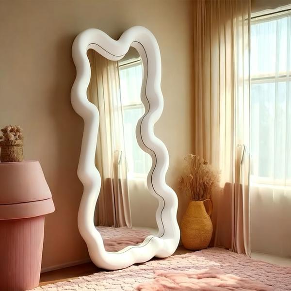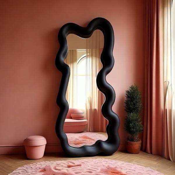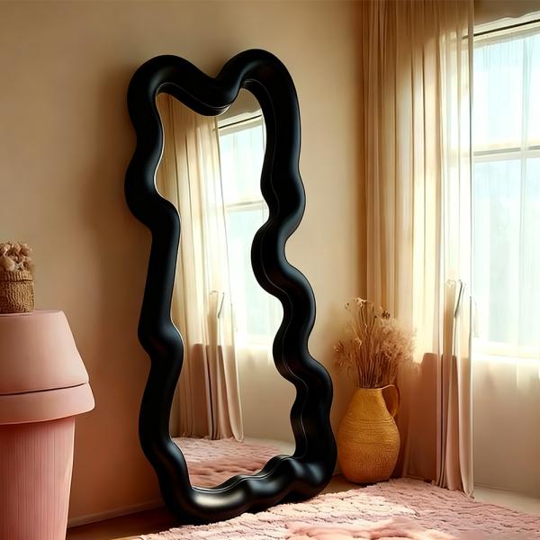 Der Spiegel besticht durch seine unregelmäßig wellenförmige Kontur, die das starre Erscheinungsbild herkömmlicher Spiegel durchbricht. Das außergewöhnliche Design verleiht dem Raum eine künstlerische Note und wird zum visuellen Highlight. Es passt perfekt zu modernen, eleganten und kunstvollen Einrichtungsstilen.