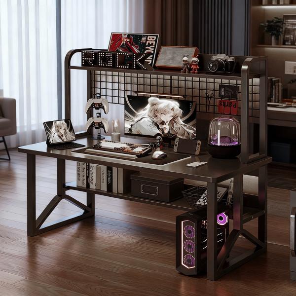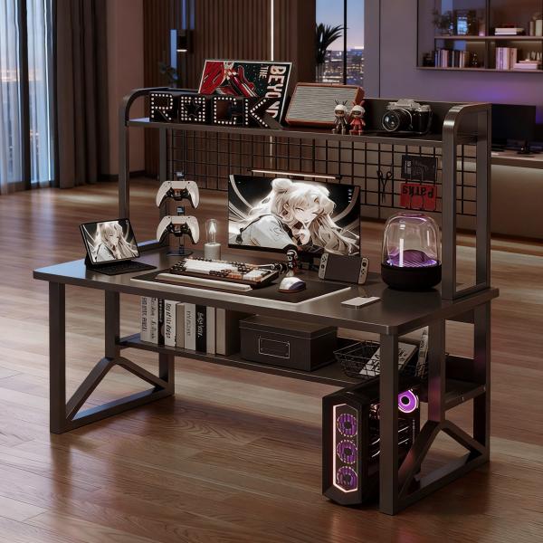 Muxing Tisch, Computertisch, Schreibtisch mit Regal, integrierter Bücherregal-Computertisch, Gaming-Tisch, 120×60×128 cm 【FY-9963】