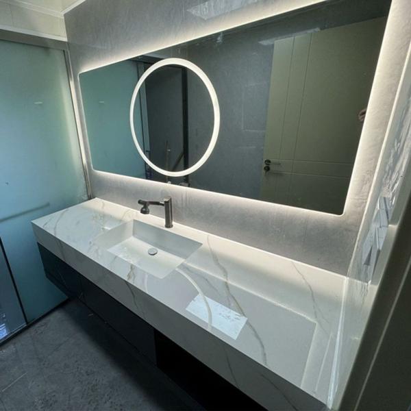 Hinweis: Obwohl die Arbeitsplatte hitze- und abriebfest ist, sollte sie nicht mit scharfen Gegenständen zerkratzt werden, um ihr schönes Aussehen zu bewahren.